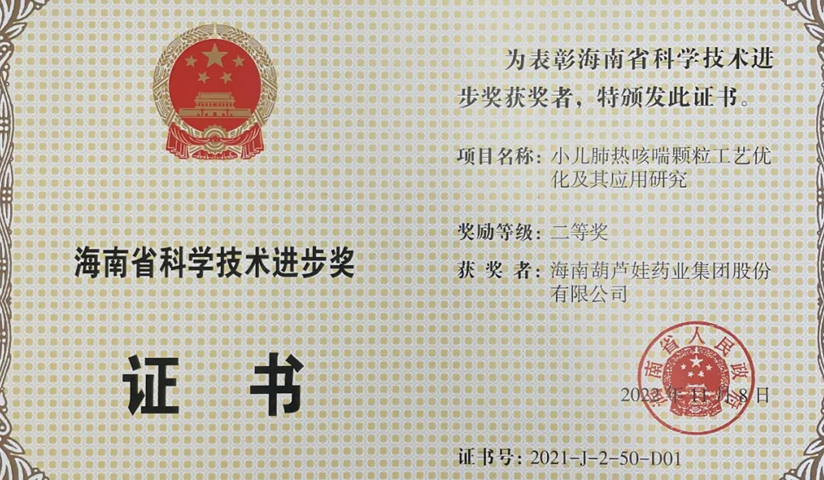 DB多宝视讯药业集团申报的专利“克咳片及其制备方法”荣获 第四届海南省专利奖金奖